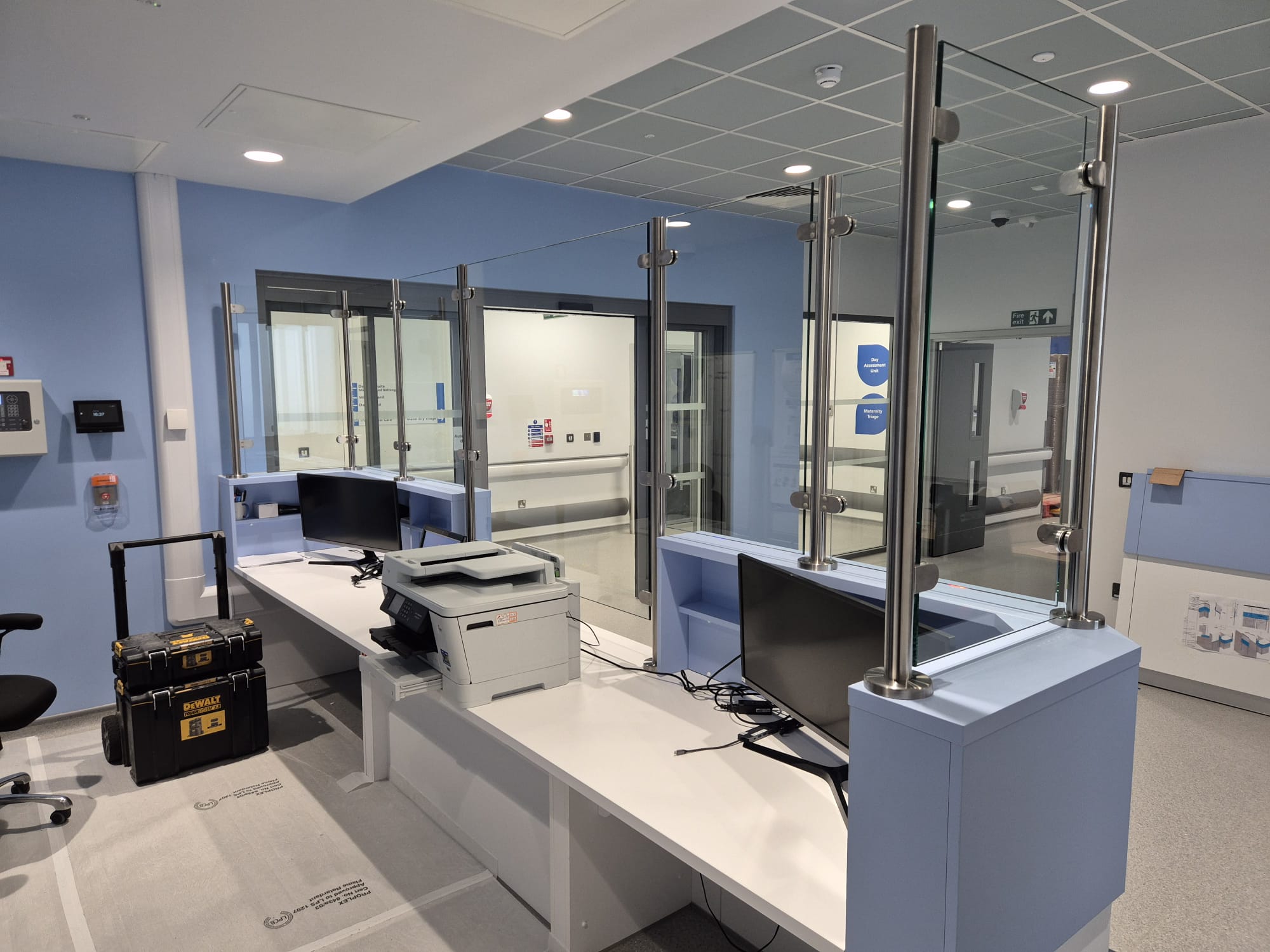 In high-traffic environments such as reception areas, outpatients, or emergency departments, fitted furniture is the first line of defence. Counters, screens and desks are not just fixtures – they are points of contact that must balance openness with security.